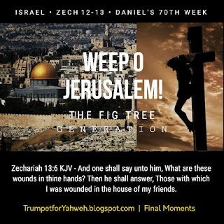 Zechariah 12:6-10 KJV - In that day will I make the governors of Judah like an hearth of fire among the wood, and like a torch of fire in a sheaf; and they shall devour all the people round about, on the right hand and on the left: and Jerusalem shall be inhabited again in her own place, even in Jerusalem. [7] The Lord also shall save the tents of Judah first, that the glory of the house of David and the glory of the inhabitants of Jerusalem do not magnify themselves against Judah. [8] In that day shall the Lord defend the inhabitants of Jerusalem; and he that is feeble among them at that day shall be as David; and the house of David shall be as God, as the angel of the Lord before them. [9] And it shall come to pass in that day, that I will seek to destroy all the nations that come against Jerusalem. [10] And I will pour upon the house of David, and upon the inhabitants of Jerusalem, the spirit of grace and of supplications: and they shall look upon me whom they have pierced, and they shall mourn for him, as one mourneth for his only son, and shall be in bitterness for him, as one that is in bitterness for his